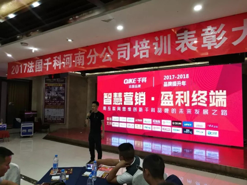公司運營總監(jiān)劉洋親自分享2017年公司品牌發(fā)展方向及戰(zhàn)略規(guī)劃,為下半年眾多商家的奮斗目標確定方向。逐鹿中原,拓展千科,將作為千科品牌下半年的主力發(fā)展目標,同時,千科品牌隆重推出全新系列終端形象展柜,通過提升終端店面形象,服務經(jīng)銷商,打造品牌強勢終端!
