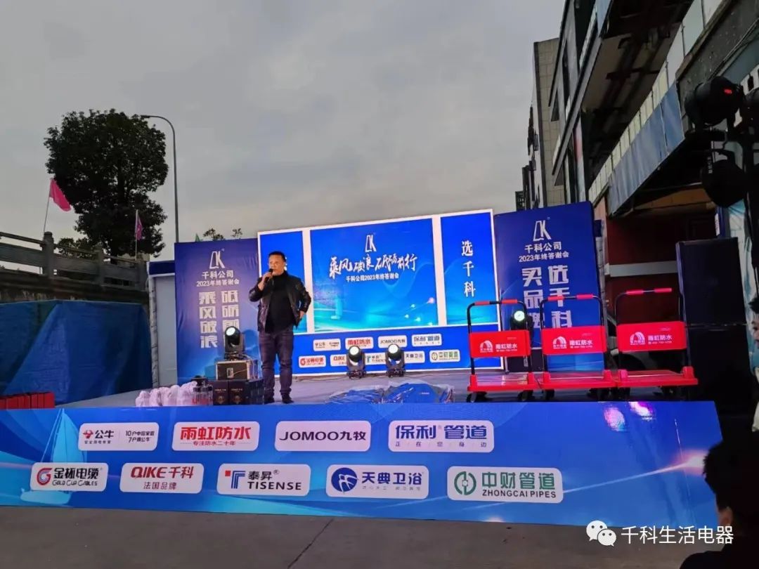 2023年12月10日,重慶云陽千科建材年終答謝晚宴活動圓滿舉行,來自云陽各地的千科分銷商和當地聯盟的三工師傅出席盛宴。答謝會的圓滿舉辦,進一步擴大了千科建材在云陽地區的影響力,為接下來的建材零售渠道發展提供了更堅實的保障。